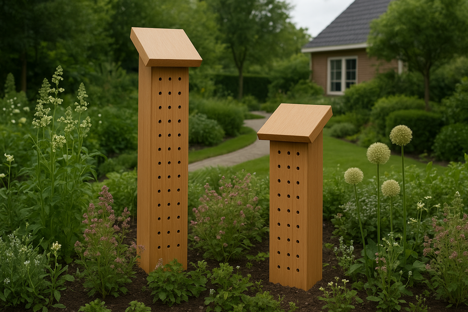 Insectentorens zijn niet alleen leuk om te zien: ze helpen bij de bestuiving van bloemen in je tuin en verhogen de biodiversiteit als je het goed aanpakt. Gebruikt eventueel: